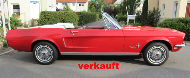 Wunderschöner Mustang V8-289/4,7L im TOP Zustand! 2004 aus Kalifornien Importiert. Super Ausstattung, mit elektrischem Verdeck, Servolenkung, Tempomat (!), beleuchteten Innenraum. Zusätzlich Holzlenkrad, Drehzahlmesser, eingebauter Batteriehauptschalter, rechter Außenspiegel, neuwertige Innenausstattung,… Betriebserlaubnis für Oldtimer der DEKRA in dem Originalzustand problemlos bekommen. Zusätzlich Motor generalüberholt mit Nockenwelle, Stößel, Zylinderköpfe, Kühler (größer), Ventile u.a. ca.4200,-Euro, Zündkerzen, Zündkabel, Lichtmaschine, Regler, Anlasser, Thermostat, Dichtungen, neue GT-Doppelrohr-4fach-Auspuffanlage,… noch mal über 2500,-Euro u.v.m. Alle Rechnungen vorhanden! Becker Radio mit Navigation, MP3, Kartenleser, Telefon/Freisprecheinrichtung über 1500,-Euro! Selbstverständlich ein Wertgutachten!