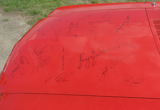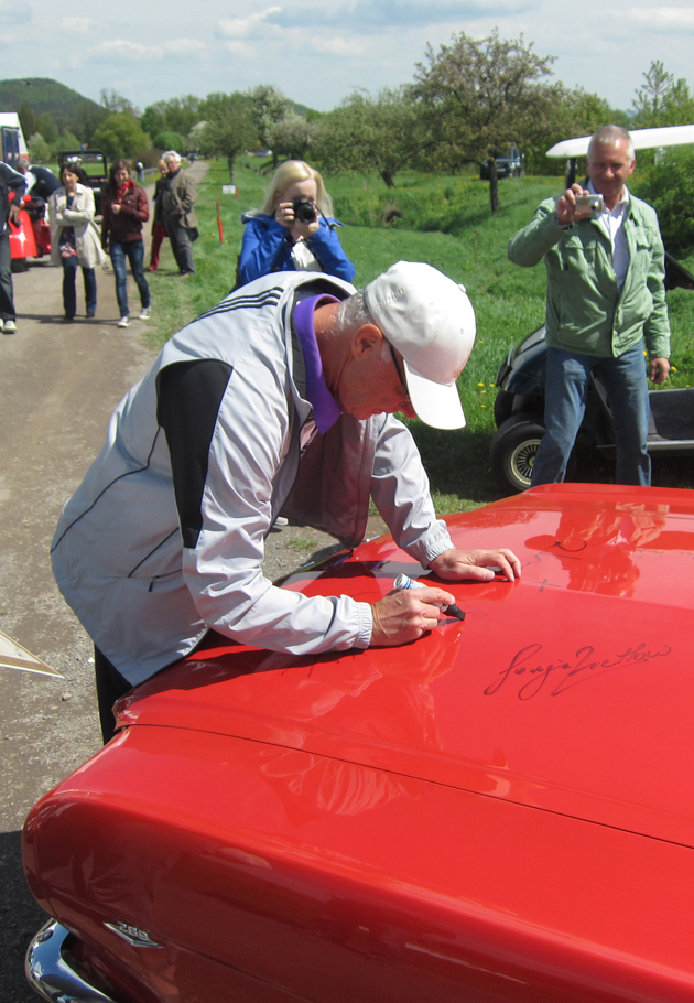 Die Prominenten wie "Fußball-Kaiser" Franz Beckenbauer, Ex-Sportler Mario Basler, Jens Weißflog und Sven Ottke sowie Moderatorin Sonja Zietlow uvm. waren von unseren Fahrzeugen begeistert und unterstützen uns gern. An unserem 66er Mustang Cabrio signierten Sie uns die Motorhaube und exclusiv für den Verein ein Blechschild.